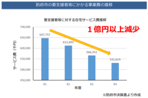 防府市の場合、要支援者にかかる事業費は顕著に低減されています。